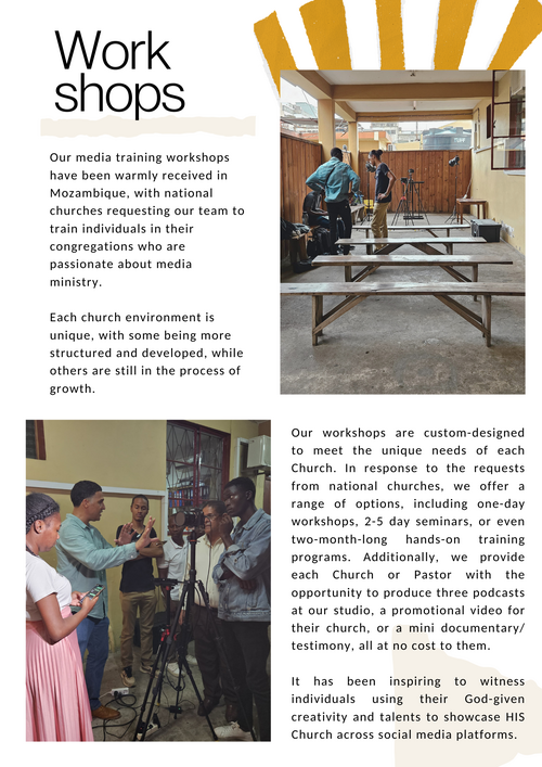 To cultivate a dynamic and creative media team that empowers individuals to use their God-given creativity to serve their local church. We envision a church that reaches the unreached, through the power of social media to spread the message of hope, love, and transformation throughout Mozambique.