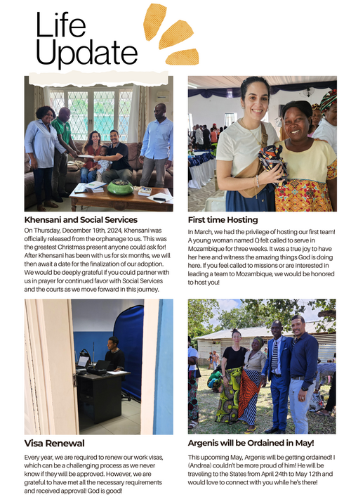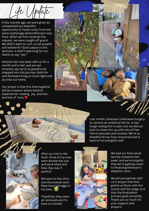 - We are in the process of adopting our Son Khensani. Please pray for favor with Social Services and Judges in our adoption process.